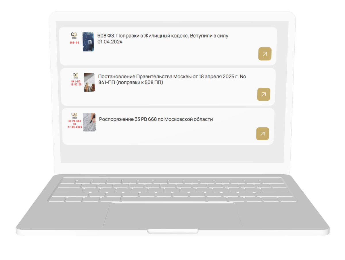 - Доступ к изменениям по нормам и законодательству по перепланировкам